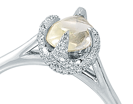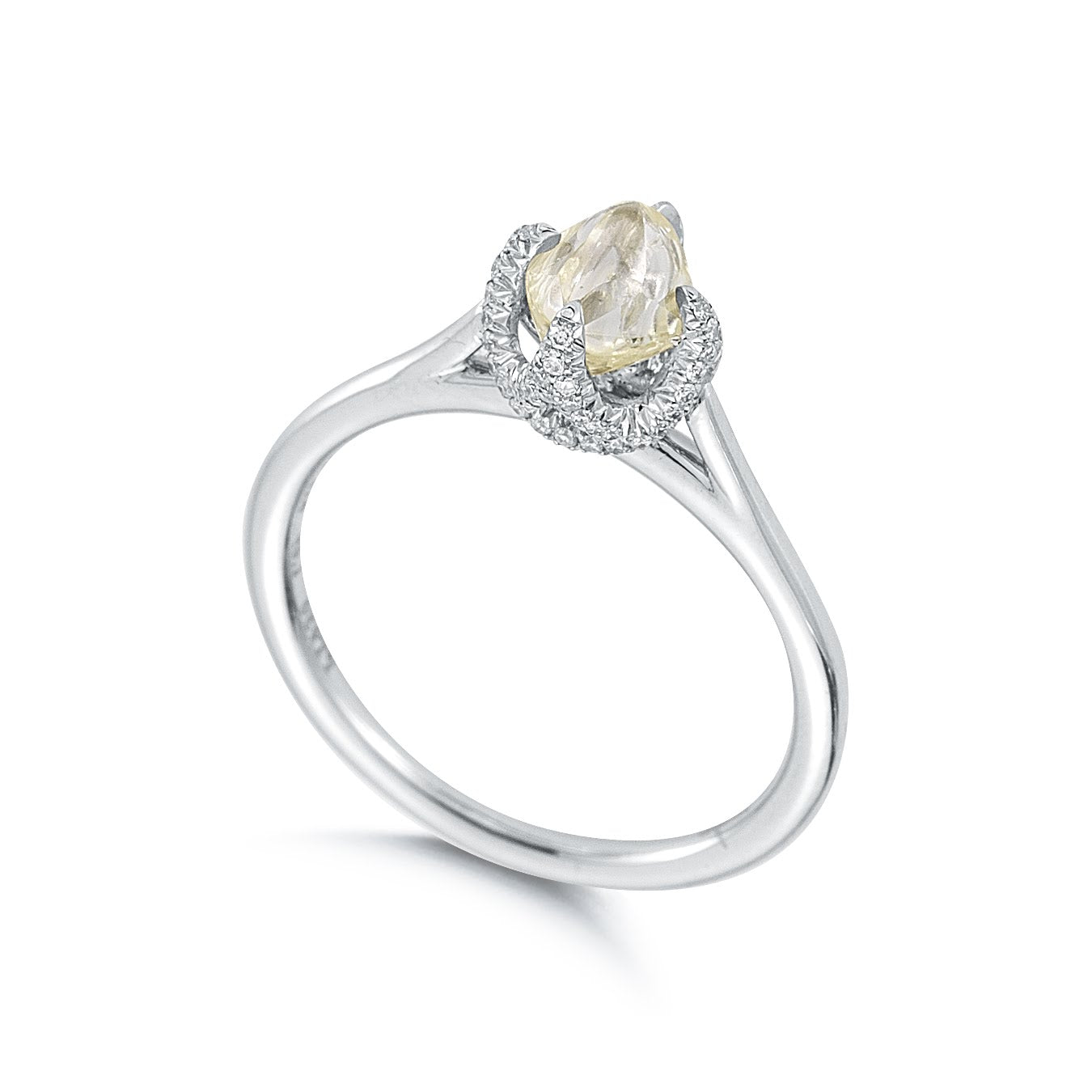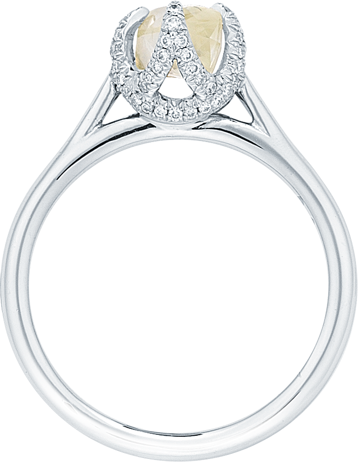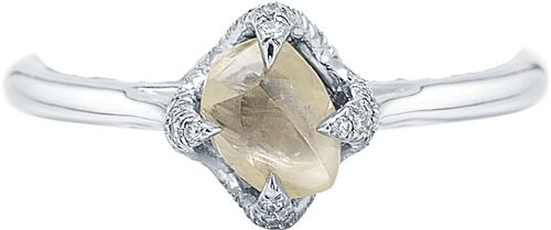 Custom Order - Only 21 Days TO Get "Signature Champagne" Only 21 Days to Get our Signature Ring featuring 1 Champagne Yellow Color Natural Rough Diamonds totaling 0.95ct - 2.00ct in Platinum and 0.15ct Micro Pavé Diamonds. Signature is an architectural twist on the traditional pronged engagement ring. Unique branches adorned in micro pave diamonds nestle the rough diamond.
