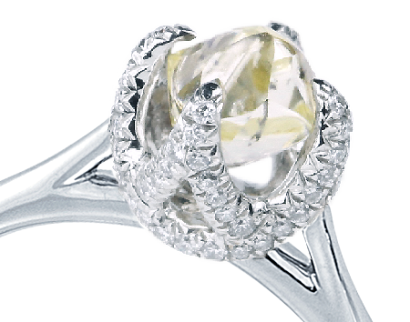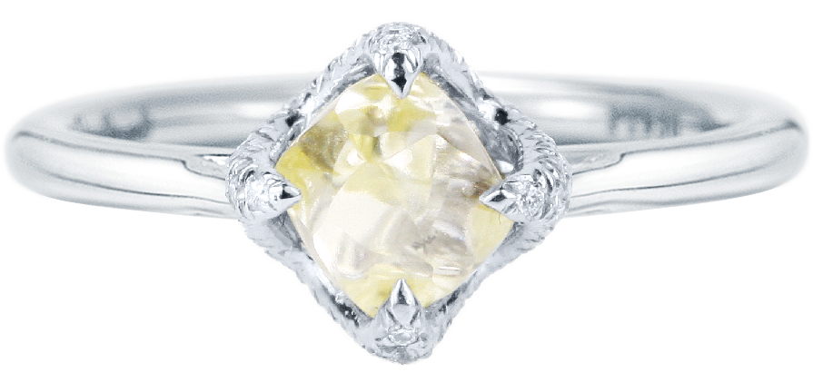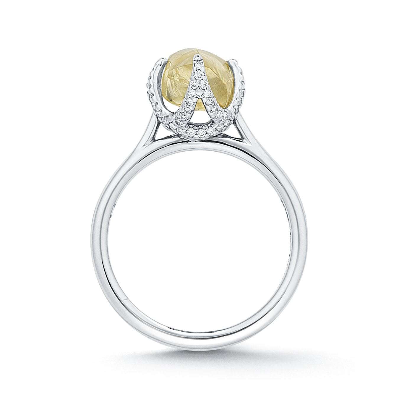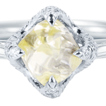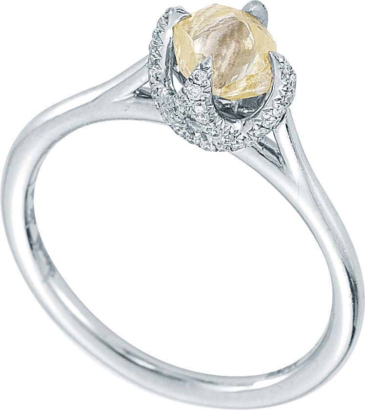 Custom Order - Only 21 Days TO Get "Signature Lemon" Ring featuring 1 Champagne Yellow Color Natural Rough Diamonds totaling 1.00ct - 2.00ct in Platinum and 0.10ct - 0.20ct Micro Pavé Diamonds. Signature is an architectural twist on the traditional pronged engagement ring. Unique branches adorned in micro pave diamonds nestle the rough diamond.