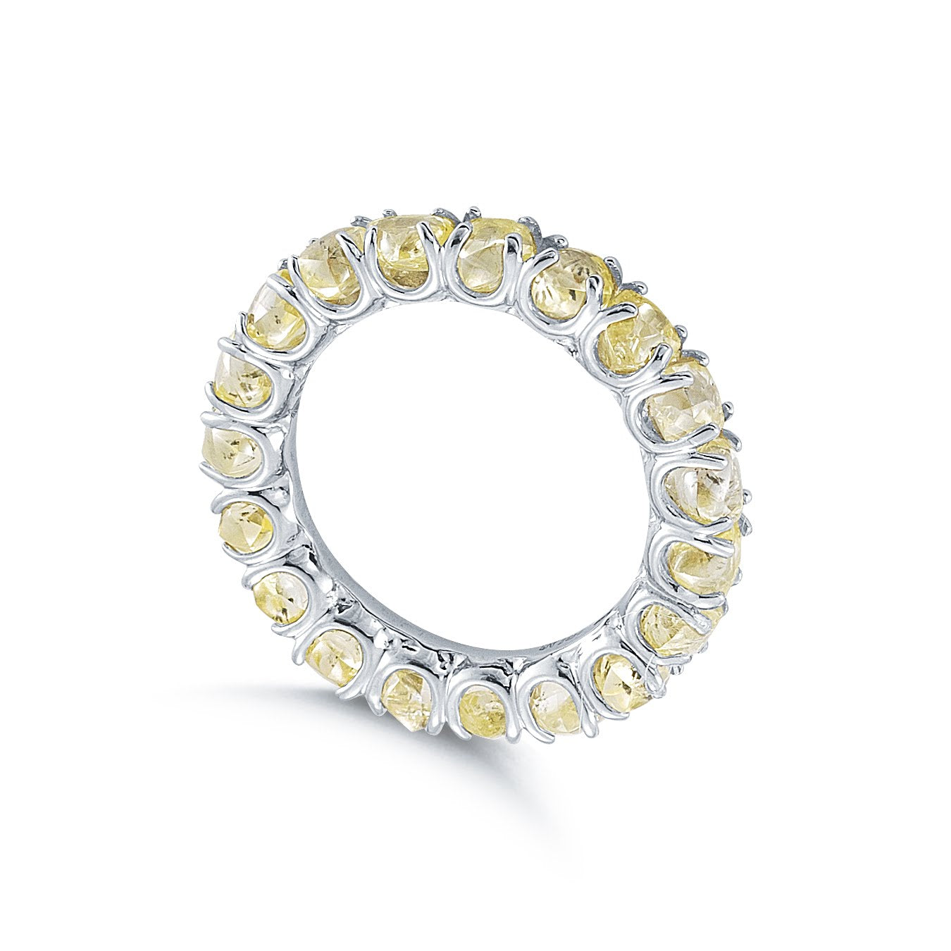 Custom Order - Only 21 Days TO Get Our Rough Diamond  Eternity Wedding Band from our - ETERNITY Collection - featuring 16-20 Lemon Yellow Natural Rough Diamonds totaling 5.50ct - 6.50cts in 18K white Gold.