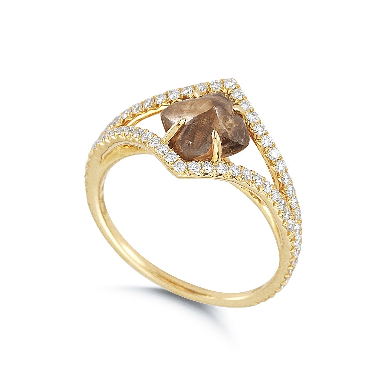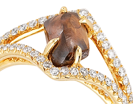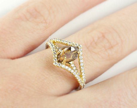 Custom Order - Only 21 Days TO get  "Victorian Chocolate" Only 21 Days to Get our beautiful, elegant, victorian solitaire ring inlaid with 1 Chocolate Brown Color Natural Rough Diamonds totaling 1.50ct  - 2.50ctin 18K Yellow Gold and 0.48ct Micro Pavé Diamonds.  The Victorian is reminiscent of the Gilded Age, known for glamour, style, and opulence. The vintage design of this ring transports the wearer to a time of grandeur.