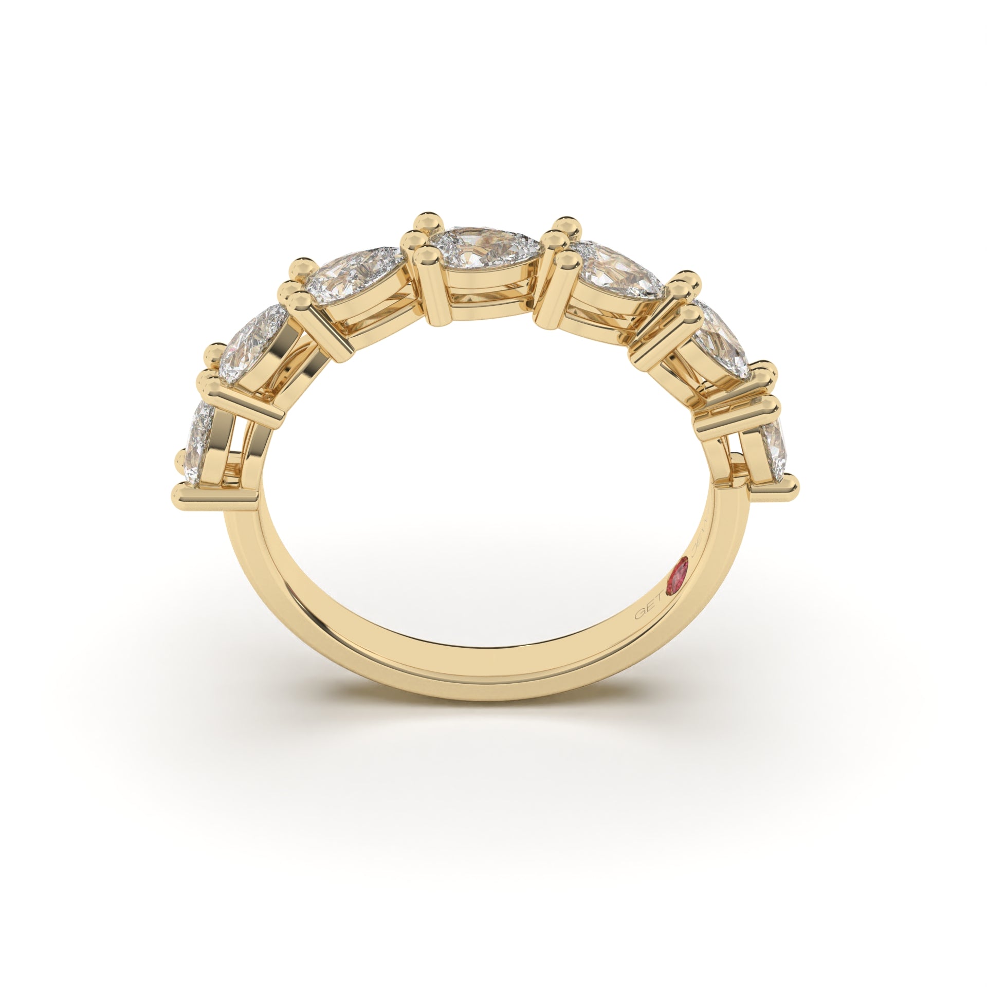 Discover the timeless beauty of the Teardrop Diamond Eternity Ring, a meticulously crafted piece that radiates sophistication and charm. This exquisite ring features 7 perfectly polished teardrop-shaped diamonds, each precisely cut to identical dimensions, ensuring a seamless and harmonious design.