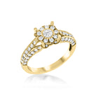 The "Sun Rays" ring is set with a central stone 0.12 points and 0.63 points side stones natural diamonds