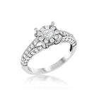 The Halo "Sun Rays"  Round Brilliant Diamond is a stunning piece that will elevate any jewelry collection. Expertly crafted using a shared-prong setting, this ring showcases natural round brilliant cut diamonds in five available carat weight options, offering a range of choices to suit your personal style.