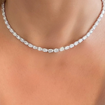 Horizontal Straight Line Oval Shape Diamond Tennis Necklace (0.30/0.50/ 1 Carats)- 25- 100 Carats - Lab or Natural Diamonds