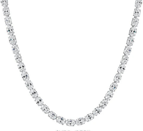 Horizontal Straight Line Oval Diamond Tennis Necklace