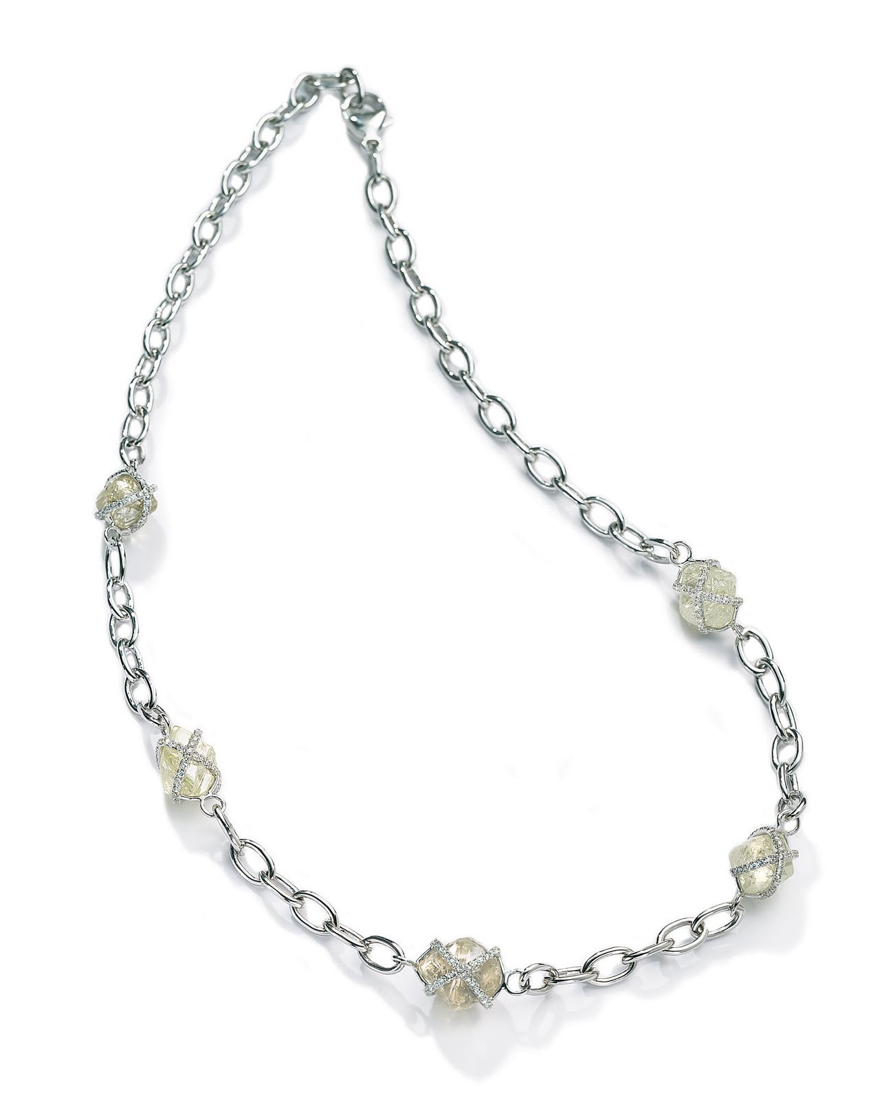 Custom Order - Only 21 Days TO Get our Luxury Embrace Necklace featuring 5  Natural Rough Diamonds totaling 8.00ct -25.00ct in 18K White Yellow or Pink Gold and a selection of Micro Pavé Diamonds. This Embrace collection is inspired by our desire to be wrapped in love and affection, micro pavé diamonds surround rough diamonds in our signature Orielle collection. Rough diamonds fold into the care of a micro pavé diamond jewelry setting that effortlessly supports them and displays their brilliance. The Orielle rough diamond jewelry collection reminds us that true beauty comes naturally.