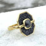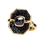 Specs: The stunning Black Opus Octagon Diamond Ring is encrusted with 3.00 cts of black diamonds set in 18k yellow gold.