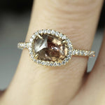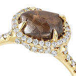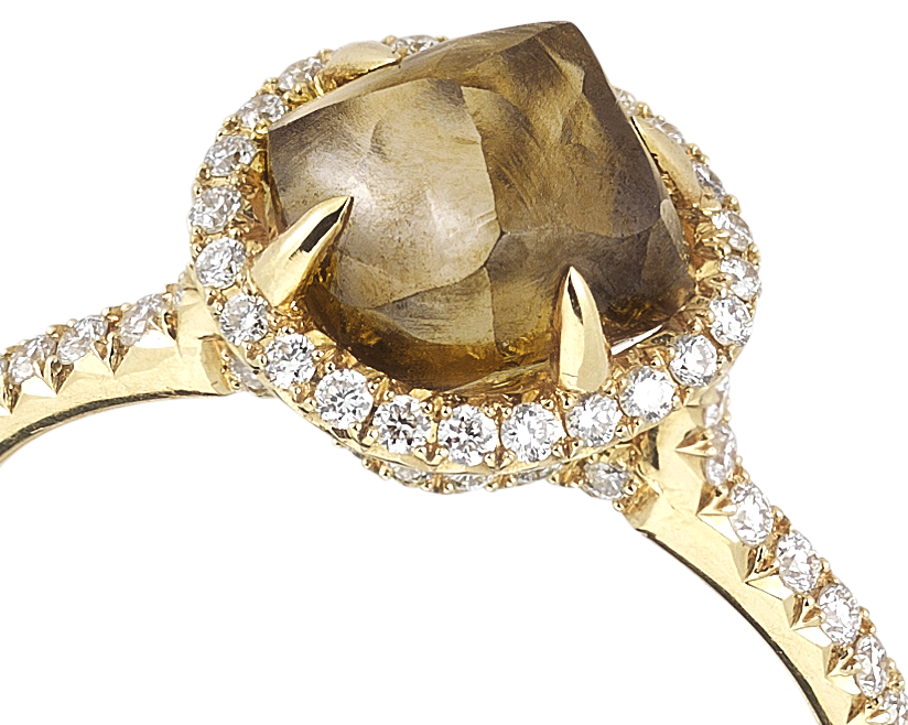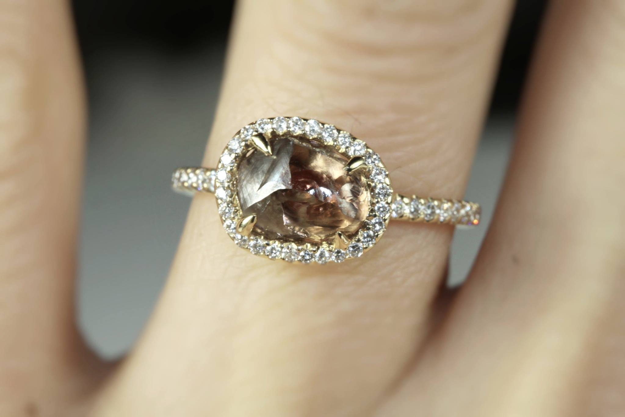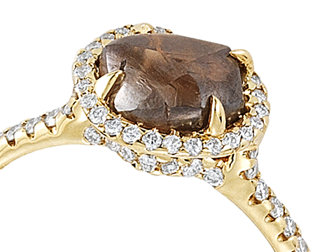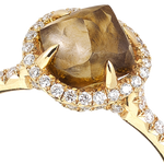 Custom Order - Only 21 Days TO Get our Classic Ring featuring 1 Chocolate Brown Color Natural Rough Diamonds totaling 1.00ct - 3.00ct in 18K Yellow Gold and 0.34ct Micro Pavé Diamonds. This Classic Ring is our take on the quintessentially classic engagement ring. The solitaire ring is a nod to timeless designs, but the halo of micro pave diamonds gives it that extra character.