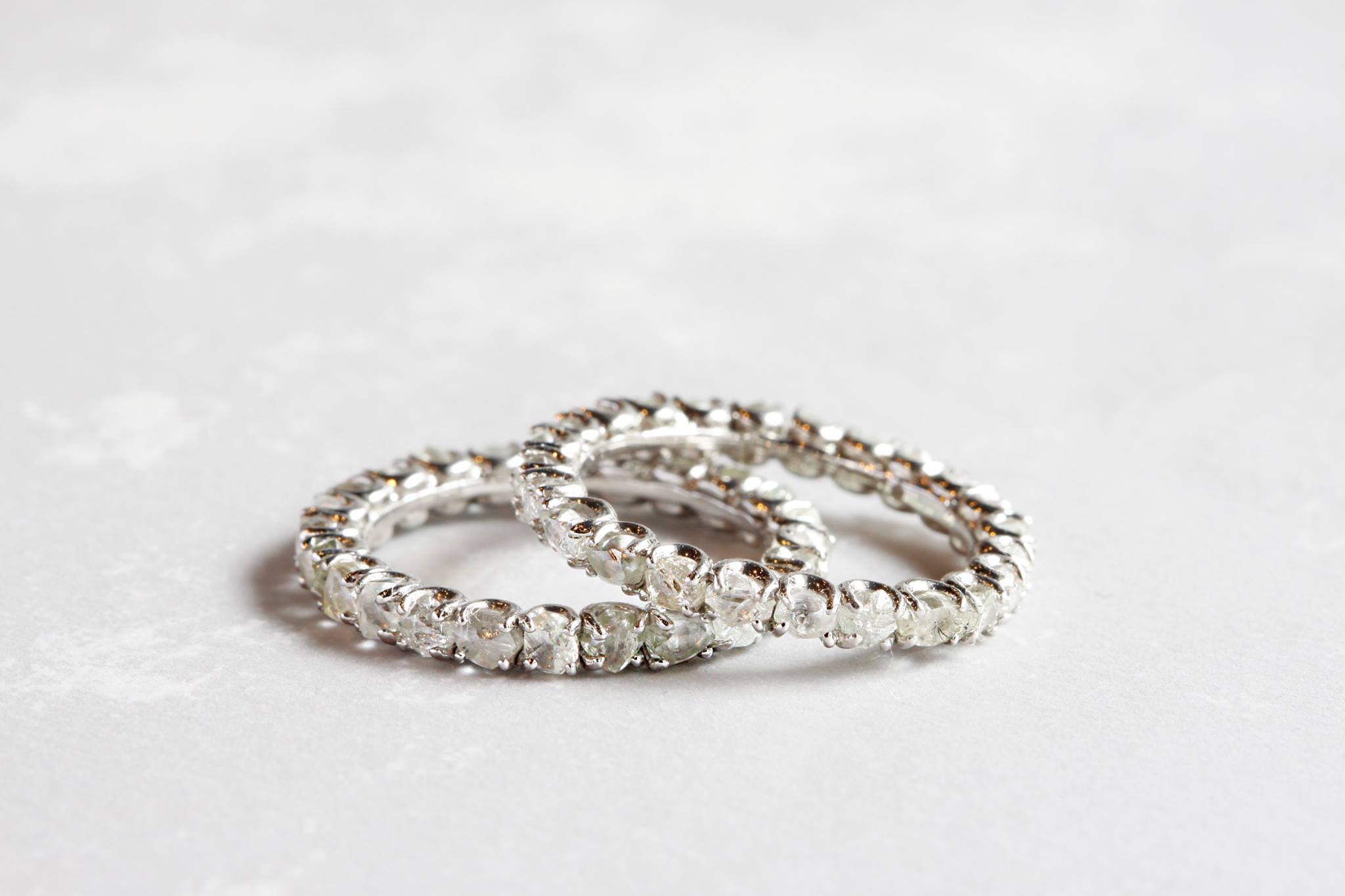 Custom Order - Only 21 Days TO Get Our Rough Diamond  Eternity Wedding Band from our - ETERNITY Collection - featuring 16-22 Natural Rough Diamonds Champaign Brown Color at totaling 2.5ct - 4.5cts in 18K White Gold.