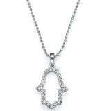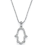 This 14K white gold Hamsa open heart pendant, is set with 24 stones at 0.25ct of white diamonds. The Hamsa size is Width: 1.5cm / Height: 2.5cm. pieces perfectly convey its decades-long devotion and passion for love, beauty, imagination, and creativity.