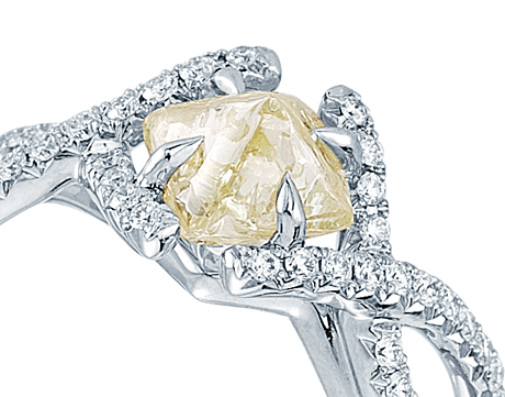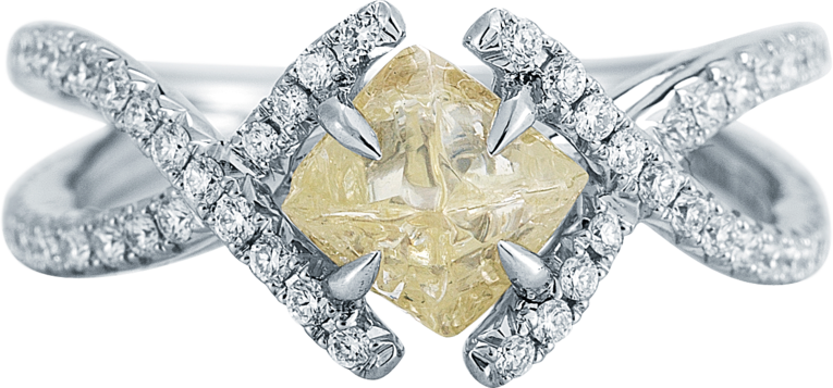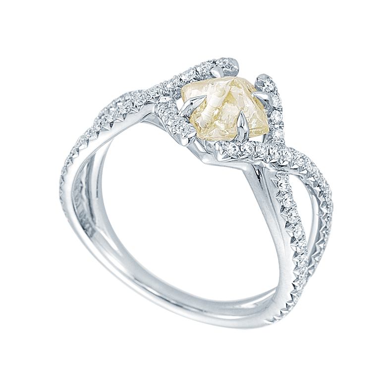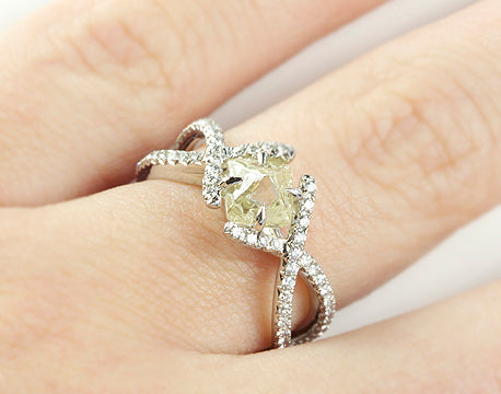 Custom Order - Only 21 Days TO Get "  our beautiful, elegant, unique Unity Champagne" solitaire ring inlaid with 0.90ct - 2.00ct Natural Rough Diamond in Champagne Yellow color and 0.30cts - 0.45cts of micro pavé diamonds.