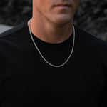 Elevate your style with the Van de Kapp (VDK) Signature Box Chain Necklace, a distinguished version of our classic box chain adorned with our iconic symbol. Crafted from premium Sterling Silver 925, this 1.8mm thick chain carries the same durable design with 100% soldered connectors for maximum strength and a polished, seamless finish. The centerpiece is our signature symbol, elegantly set with two natural rubies that add a touch of bold sophistication and vibrant color. Available in 18", 20", 22", 24", and 26" lengths, this necklace is perfect for those who appreciate a refined, exclusive piece with a personal touch. Whether worn alone or layered, the VDK Signature Box Chain with rubies is a testament to quality and iconic style.